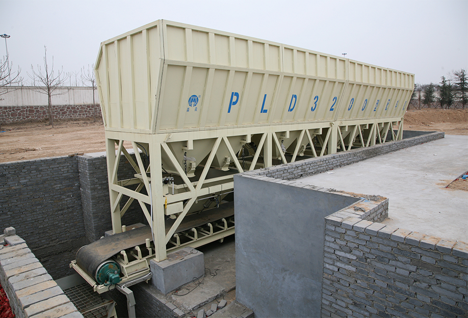 PLD3200配料機(jī)有四個(gè)20m3儲(chǔ)料倉(cāng),可儲(chǔ)存四種骨料。儲(chǔ)料倉(cāng)內(nèi)的砂石從各儲(chǔ)料倉(cāng)底部料門卸入四個(gè)秤斗中進(jìn)行稱量;稱量完畢后通過(guò)水平皮帶機(jī)輸送至斜皮帶機(jī),過(guò)沖量自動(dòng)修正,欠秤自動(dòng)補(bǔ)償,稱量精準(zhǔn)。