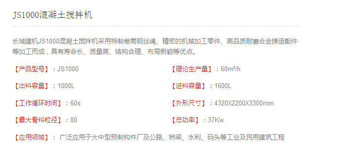 長城建機(jī)JS1000產(chǎn)品信息介紹