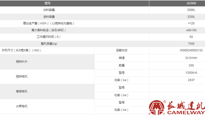 長城JS2000攪拌機主要性能: