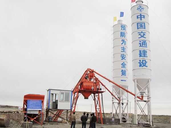 6、稱量裝置:小型商砼設(shè)備除了配料機(jī)中的骨料稱量裝置,還有粉料和液體稱量裝置。粉料稱量裝置在攪拌主機(jī)上方,粉料達(dá)到預(yù)定值后,螺旋輸送機(jī)停止供粉料;液體稱量裝置主要稱量水和外加劑,二者分開稱量,然后將液體外加劑投放到水稱斗內(nèi)預(yù)先混合。