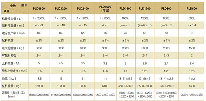 PLD混凝土配料機技術(shù)參數(shù)