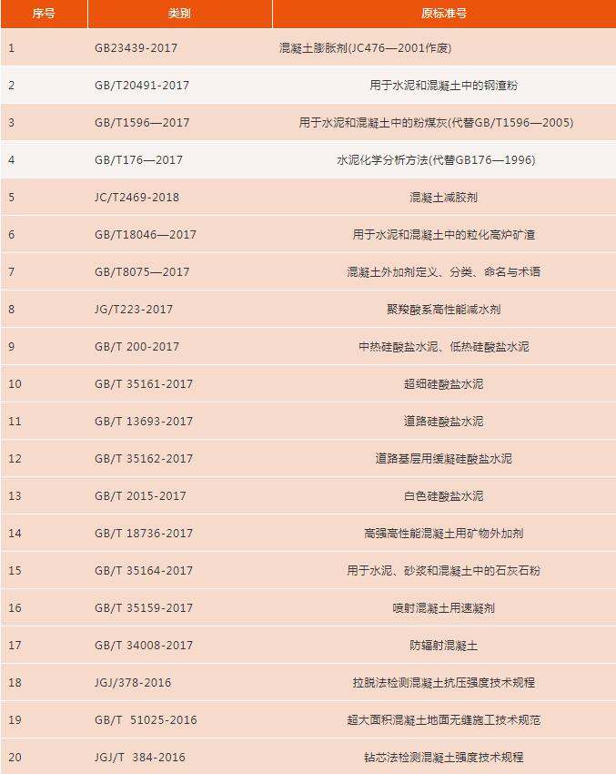 附2018年混凝土行業(yè)最新標(biāo)準(zhǔn)目錄;